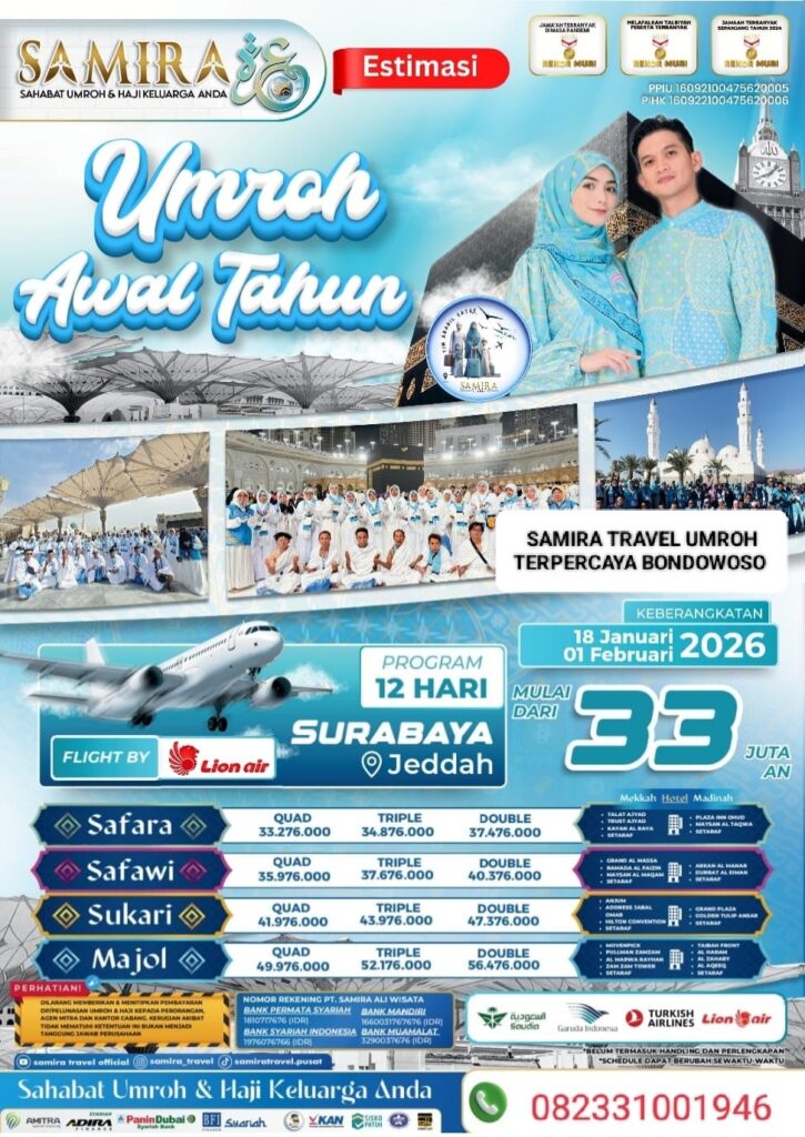 Awal tahun selalu menjadi waktu terbaik untuk memulai perjalanan spiritual menuju tanah suci. Banyak jamaah memilih berangkat Umroh di bulan Januari 2026 karena suasananya lebih tenang, cuaca lebih bersahabat, dan waktu yang tepat untuk memperbarui niat hidup. Bagi masyarakat Bondowoso, perjalanan ini semakin mudah bersama Samira Travel Umroh Bondowoso, agen resmi yang sudah dipercaya ribuan jamaah.